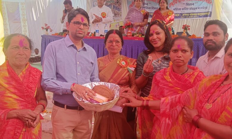 कांकेर। अंतर्राष्ट्रीय महिला दिवस पर विकासखण्ड भानुप्रतापपुर के ग्राम भानबेड़ा में महिला शक्ति संकुल संगठन द्वारा कार्यक्रम आयोजित किया गया, जिसमें मुख्य अतिथि के रूप में भानुप्रतापपुर विधायक श्रीमती सावित्री मंडावी उपस्थित थीं। उक्त कार्यक्रम में विशिष्ट अतिथि के तौर पर उपस्थित जिला पंचायत के मुख्य कार्यपालन अधिकारी हरेश मंडावी ने उपस्थित समूह के महिला सदस्यों से चर्चा करते हुए ज्यादा से ज्यादा लखपति दीदी बनने एवं सशक्तिकरण पर विशेष प्रयास करने के लिए प्रेरित किया।