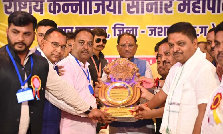 जशपुरनगर। मुख्यमंत्री विष्णु देव साय रविवार को जशपुर विकासखंड के श्याम पैलेस में राष्ट्रीय कनौजिया सोनार महापरिवार जशपुर मंडल के प्रतिभा सम्मान समारोह कार्यक्रम में शामिल हुए। और समाज को सामाजिक भवन बनाने के लिए 25 लाख की घोषणा की। मुख्यमंत्री ने सोनार समाज के 10 वीं और 12 बोर्ड वीं में अच्छे अंक लाने वाले और आई आई टी में प्रवेश पाने वाले मेडिकल में प्रवेश लेने वाले प्रतिभाशाली बच्चों का प्रतीक चिन्ह और प्रशस्ति पत्र देकर सम्मानित किया।