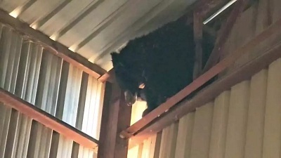 शहद की तलाश में राइस मिल में घुसा भालू, टिन शेड पर 30 फीट की ऊंचाई पर फंसा