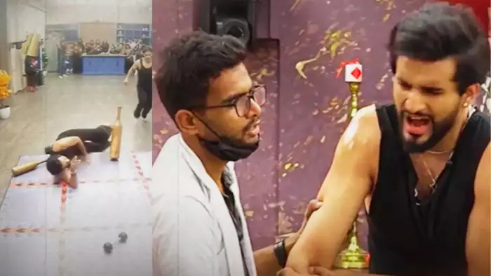 सामने आए वीडियो में आसिम रियाज और अभिषेक मल्हान के बीच एक टास्क हो रहा था। दोनों को एक जगह सें डंबल उठाकर दूरी जगह जमीन पर बने प्लेटफॉर्म पर रखना था। जो ज्यादा और जल्दी रखता। जीत जाता। पहला तो दोनों ने बखूबी रखा। लेकिन दूसरा रखते वक्त फुकरा इंसान का पैर लड़खड़ा जाता है और वह जैसे ही डंबल लेकर प्लेटफॉर्म के पास पहुंचने वाले होते हैं। गिर जाते हैं और उनका दाहिना कंथा कोने से लग जाता है। वह उठ नहीं पाते।