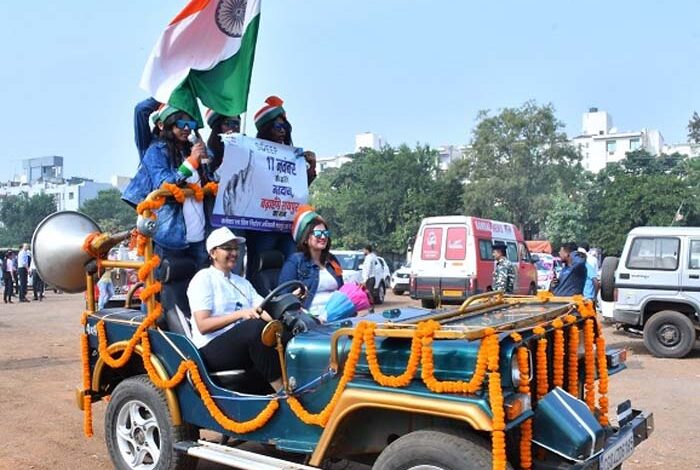 छत्तीसगढ़ राज्य की मुख्य निर्वाचन पदाधिकारी सीनियर महिला आई.ए.एस. आॅफिसर श्रीमती रीना बाबा साहेब कंगाले ने मतदाता जागरूकता हेतु रायपुर जिला प्रशासन द्वारा आयोजित इस महिला कार रैली में खुद स्टीयरिंग थाम कर काफिले को लीड किया। रैली के दौरान उनके साथ जीप में सवार महिलाएं पूरे रास्ते भर लाउड स्पीकर पर मतदाताओं से 17 नवंबर को मतदान अवश्य करने की अपील करते हुए दिखीं।