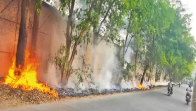 कहां है निगम अमला:एम्स की बाउंड्री वॉल के पास कर्मचारियों ने कचरे में लगाई आग, 20 पेड़ झुलसे