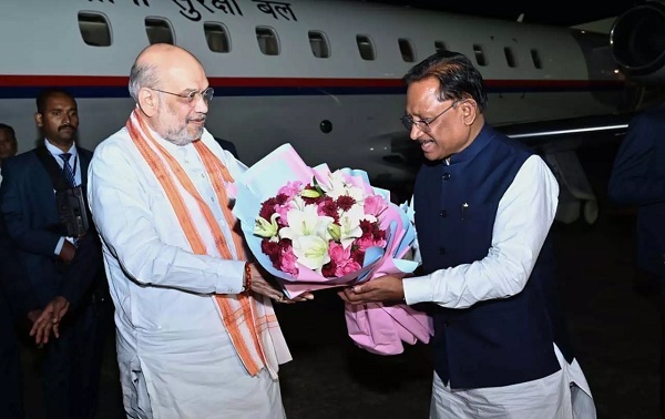 CM विष्णुदेव साय ने केंद्रीय गृह मंत्री अमित शाह का किया भव्य स्वागत