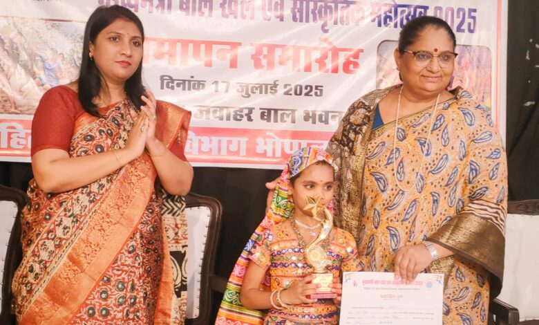 महिला-बाल विकास मंत्री सुश्री निर्मला भूरिया की उपस्थिति में भोपाल स्थित जवाहर बाल भवन में गुरूवार को “मुख्यमंत्री बाल खेल एवं सांस्कृतिक महोत्सव 2025” का समापन समारोह आयोजित हुआ। इस अवसर पर उन्होंने कहा कि “बच्चों को समय-समय पर अपनी प्रतिभा प्रदर्शित करने का मंच मिलना चाहिए। यह मंच केवल प्रतिस्पर्धा नहीं, बल्कि उनके आत्मविश्वास, रचनात्मकता और नेतृत्व क्षमता को विकसित करने का अवसर है।”