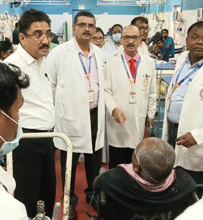 बिलासपुर। संभागायुक्त सुनील कुमार जैन ने आज सिम्स अस्पताल का औचक निरीक्षण किया गया। उन्होंने विभिन्न वार्डों का भ्रमण कर व्यवस्था को नजदीक से देखा। मरीजों से मुलाकात कर उनकी बीमारी और मिल रही इलाज सुविधा के बारे में जानकारी ली। श्री जैन ने निरीक्षण के दौरान मरीजों की सुविधा के लिए सिम्स प्रबंधन को कई निर्देश दिए। कलेक्टर संजय अग्रवाल, नगर निगम आयुक्त अमित कुमार, डीन डॉक्टर रमनेश मूर्ति,अस्पताल अधीक्षक डॉक्टर लखन सिंह एवं नोडल अधिकारी डॉ भूपेंद्र कश्यप भी दौरे में साथ थे।