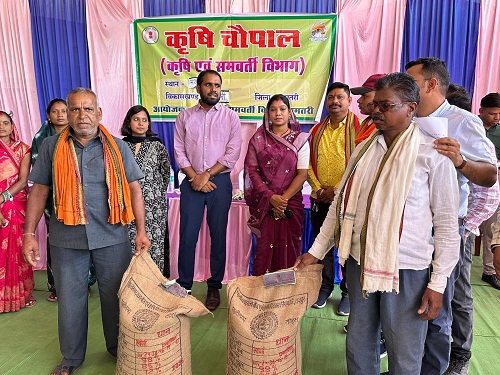 कलेक्टर ने कहा कि अब समय आ गया है कि धान की पारम्परिक खेती को छोड़कर किसान नगदी फसल, पशुपालन, उद्यानिकी फसल की ओर कदम बढाया जाये। कलेक्टर श्री मिश्रा ने कहा कि आप सभी की सुविधा के लिए यहां कृषि, पशुपालन, उद्यानिकी, मछलीपालन सहित अन्य समवर्ती विभागों द्वारा स्टॉल लगाये गये है, जहां आप किसान क्रेडिट कार्ड बनाकर शासन की योजनाओं का लाभ ले सकते है। कलेक्टर ने उपस्थित किसानों को खेती को और बेहतर बनाने के लिए सुझाव भी मांगे। उन्होंने सभी को आश्वासन दिया कि जिले में किसानों की आय बढ़ाने और कृषि विकास के लिए हरसंभव मदद दी जाएगी। इस अवसर पर कलेक्टर एवं सीईओ ने किसान राजकुमार सिन्हा और तोमन सिंह ध्रुव को बीज भी वितरित किया।