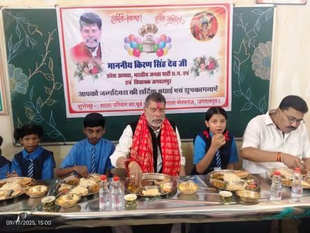 विधायक किरण देव ने अपने जन्मदिन पर पूर्व माध्यमिक शाला भैरमगंज के बच्चों को दिया न्यौता भोज