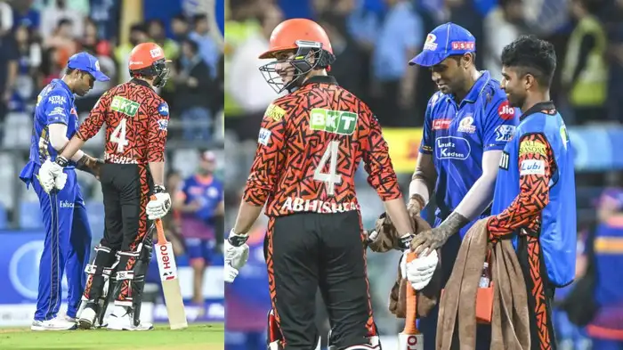 मुंबई: अभिषेक शर्मा हाल ही में काफी चर्चा में आए थे। उन्होंने पंजाब किंग्स के खिलाफ शतक लगाकर अपनी जेब से एक पर्ची निकाली थी। इस पर्ची पर लिखा था कि यह आपके लिए है ऑरेंज आर्मी। तब उस पर्ची के साथ उनकी फोटो सोशल मीडिया पर जमकर वायरल हुई थी। अब मुंबई इंडियंस के खिलाफ भी अभिषेक से कुछ ऐसी ही उम्मीद की जा रही थी। ऐसे में मुंबई के स्टार बल्लेबाज सूर्यकुमार यादव अभिषेक की जेब में हाथ डालते हुए नजर आए।