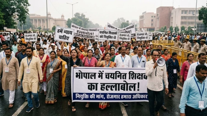 भोपाल में चयनित शिक्षकों का हल्लाबोल, नियुक्ति में देरी पर पांचवीं बार सड़क पर उतरे अभ्यर्थी
