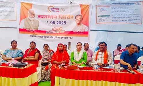 सुकमा। कलेक्टर देवेश कुमार ध्रुव के निर्देशन तथा मार्गदर्शन में कोंटा विकासखंड के नक्सल प्रभावित अंदरूनी क्षेत्र पोलमपल्ली में शुक्रवार को सुशासन तिहार के अंतर्गत समाधान शिविर का आयोजन किया गया। कार्यक्रम में पोलमपल्ली, कांकेरलंका, कोर्रापाड़, पालामडलू और चिंतागुफा के ग्रामीण बड़ी संख्या में शामिल हुए। कार्यक्रम में उपस्थित जनसमूह को राज्य महिला आयोग सदस्य  दीपिका सोरी ने संबोधित करते हुए केंद्र एवं राज्य सरकार की योजनाओं से अवगत कराया गया।