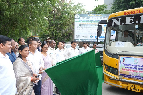 हरी झंडी दिखाकर बस को किया गया रवाना