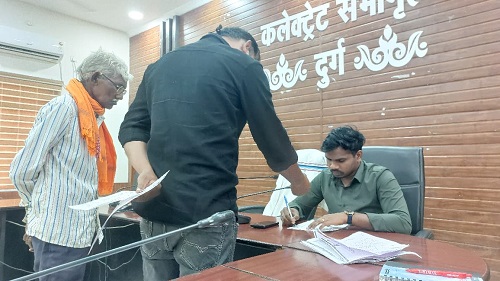 दुर्ग । जिला कार्यालय के सभाकक्ष में कलेक्टर अभिजीत सिंह के निर्देशानुसार डिप्टी कलेक्टर हितेश पिस्दा एवं उत्तम ध्रुव ने जनदर्शन कार्यक्रम में पहुंचे जनसामान्य लोगों से मुलाकात कर उनकी समस्याएं सुनी। उन्होंने जनदर्शन में पहुंचे सभी लोगों की समस्याओं को गंभीरता से सुना और समुचित समाधान एवं निराकरण करने संबंधित विभागों को शीघ्र कार्यवाही कर आवश्यक पहल करने को कहा। जनदर्शन में डिप्टी कलेक्टर हितेश पिस्दा भी उपस्थित थे। जनदर्शन में अवैध कब्जा, आवासीय पट्टा, प्रधानमंत्री आवास, भूमि सीमांकन कराने, सीसी रोड निर्माण, ऋण पुस्तिका सुधार, आर्थिक सहायता राशि दिलाने सहित विभिन्न मांगों एवं समस्याओं से संबंधित आज 136 आवेदन प्राप्त हुए।