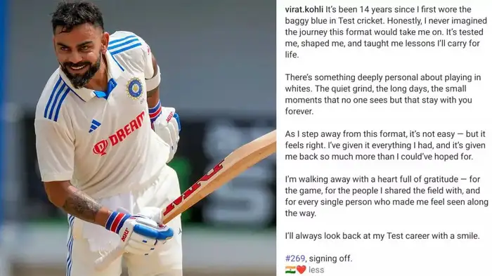 इंस्टाग्राम पर विराट कोहली का भावुक पोस्ट लिखते हुए टेस्ट क्रिकेट से संन्यास
